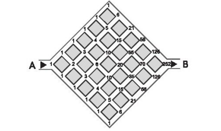 一共有252种路线。下图中的数字表示所有可能的路线经过该数字所在交叉点的累积次数。