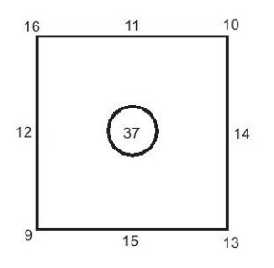 下图所示答案是将数字放在正方形边周围的一种方法。