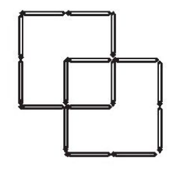 从右上角和左下角分别拿走2根火柴,然后再从表格里面拿走4根火柴。那么,现在图中就有2个大正方形和1个小正方形,一共有3个正方形。