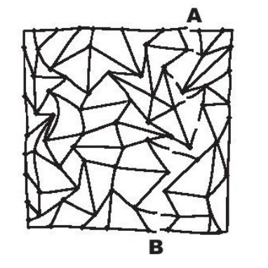 如果将这个网剪成两半,最少需要8步。从A开始,由上向下剪到B。
