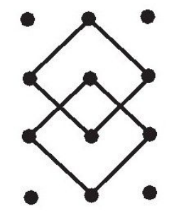 题中的12个黑色圆点可以画出20个长方形。大家可能漏掉的2个长方形已经在下图中画出。