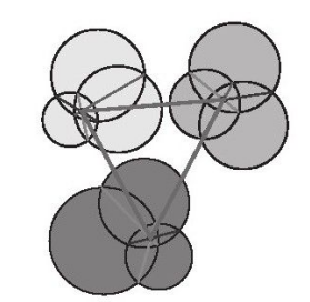 每3个圆的3条公共弦有1个交点,一共有3个这样的交点,这3点连成线组成1个三角形。
