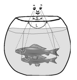 从鱼身反射出的光线,由水进入空气时,在水面发生了折射,而折射角大于入射角,折射光线进入人眼,人眼逆着折射光线的方向看去,觉得这些光线好像是从它们的反向延长线的交点鱼像发出来,鱼像是鱼的虚像,鱼像的位置比实际的鱼的位置要高。