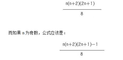 如果n(n为每条边上三角形的个数)为偶数,三角形的总数将遵循下面这个公式: