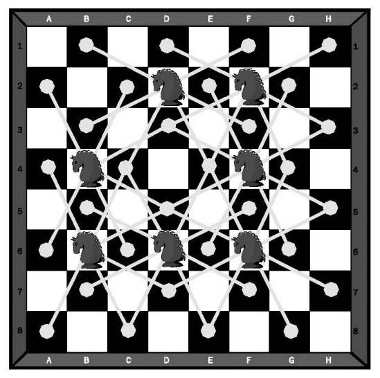 如图所示,最少需要7个骑士。