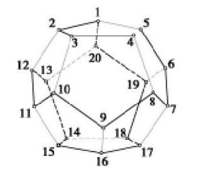 按照下图所示,顺次沿着标有数字1,2,3……19,20的线路走,最后从顶点20回到顶点1。