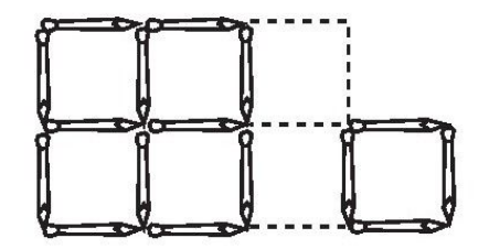 如果将下图中虚线所示的钉子拿走的话,那么将有5个小正方形和1个大正方形,一共是6个。