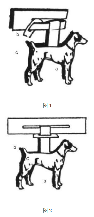 如下图,将图1中的大纸环(b)折叠,然后把小纸环从d处塞入。现在,将小狗挂在纸环上(如图1所示)。然后,把小纸环再滑回末端(d),并套在小狗上。展开大纸环,这样,便完成了(如图2所示)。提示:当你折叠大纸环时,只需将纸弯曲,不要把它弄皱。只有这样,你再展开纸环时就看不出它被折叠的痕迹了。