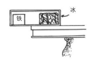在演出开始之前,先在手提箱内放两样东西。在伸出桌子的那边放一大块儿铁,而在另一边放一大块儿冰,冰块的重量再加上手提箱这边的重量便可以抵消铁块的重量。但是,当冰块融化的时候,水就会均匀地分布在手提箱里,这样,铁块的重量足以使手提箱从桌子上掉下来。这也可以称得上是一种计时装置。