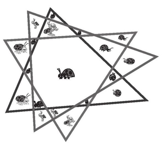 这一点很容易证明。2个三角形相交,最多能够形成7个独立的空间,而第3个三角形的每一条边最多能够与4条直线相交,因此它能够与前2个三角形再形成12个新的空间,所以加起来就是19个空间。