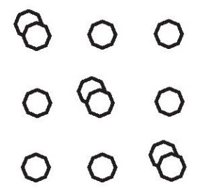 下图展示了如何将12个棋子排成7行—水平方向3行、垂直方向3行和一条对角线(从右上角到左下角),每行各有4个棋子。