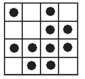 我们知道,可以排列的最多的偶数行列数是16。下图就是所要画出的棋盘。你也可以把筹码放在与之不同的地方,但是结果要保持一致。