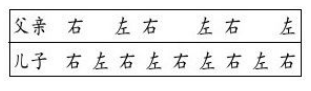 父亲和儿子不可能有同时迈出左脚的情况,看下表: